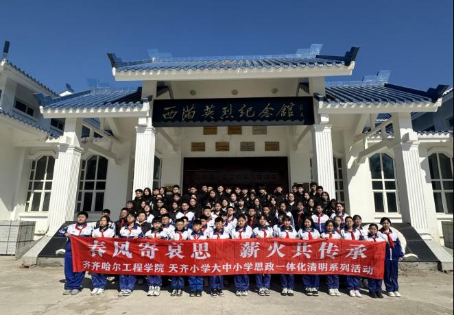 清明将至,哀思寄英烈。为深切缅怀革命先烈丰功伟绩,传承红色基因,加强校地、校际党建联动与思政教育融合,引导师生与少年儿童厚植家国情怀、赓续红色血脉,4月1日,土木与管理学院党委联合马克思主义学院、天齐小学,共同前往西满烈士陵园开展清明祭扫主题活动。