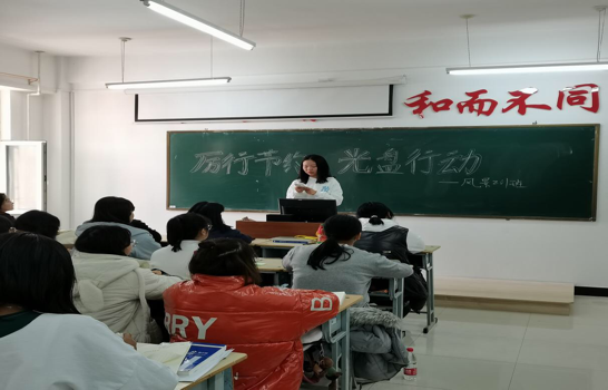 活动上,各班级团支书以带领同学们朗诵古诗词,观看视频、图片等形式进行活动开展,通过了解我国关于食物浪费的报告,以及偏远地区缺少食物的情况,使二者形成鲜明的对比,让同学们认识到节约的重要性与必要性,同时引发同学们的深思。对“光盘行动”的意义及注意事项进行阐释,并向同学们发出“光盘行动”的倡议,让同学们踊跃参与,积极发言,提出自己对光盘行动的看法和意见,并针对食堂浪费食物这一现象进行讨论。最后,由团支书对同学们提出的观点和建议进行总结如:“吃多少买多少”、“积极响应校园一元餐活动”等,并倡导大家争做“光盘行动”的实践者,“勤俭节约”的践行者。