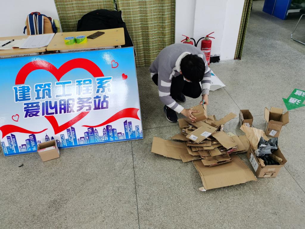 本次活动由建筑工程系学生党员、学生干部、团干部、学长、志愿者共同参与,具体工作内容为由志愿者按时到岗签到后,进行相应志愿工作的分配与安排。志愿者们的主要工作任务是对菜鸟驿站内的垃圾进行分类,并收集快递箱和废水瓶,之后将快递箱拆开平铺、废水瓶进行压缩处理,交到指定地点,变废为宝。这些可再利用的“垃圾资源”会转化为“爱心资源”,用以“烛光关爱”志愿服务活动中专项资金的形式,为有困难的学生带去温暖与帮助。