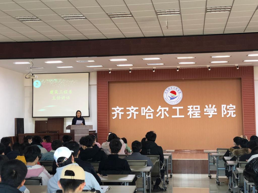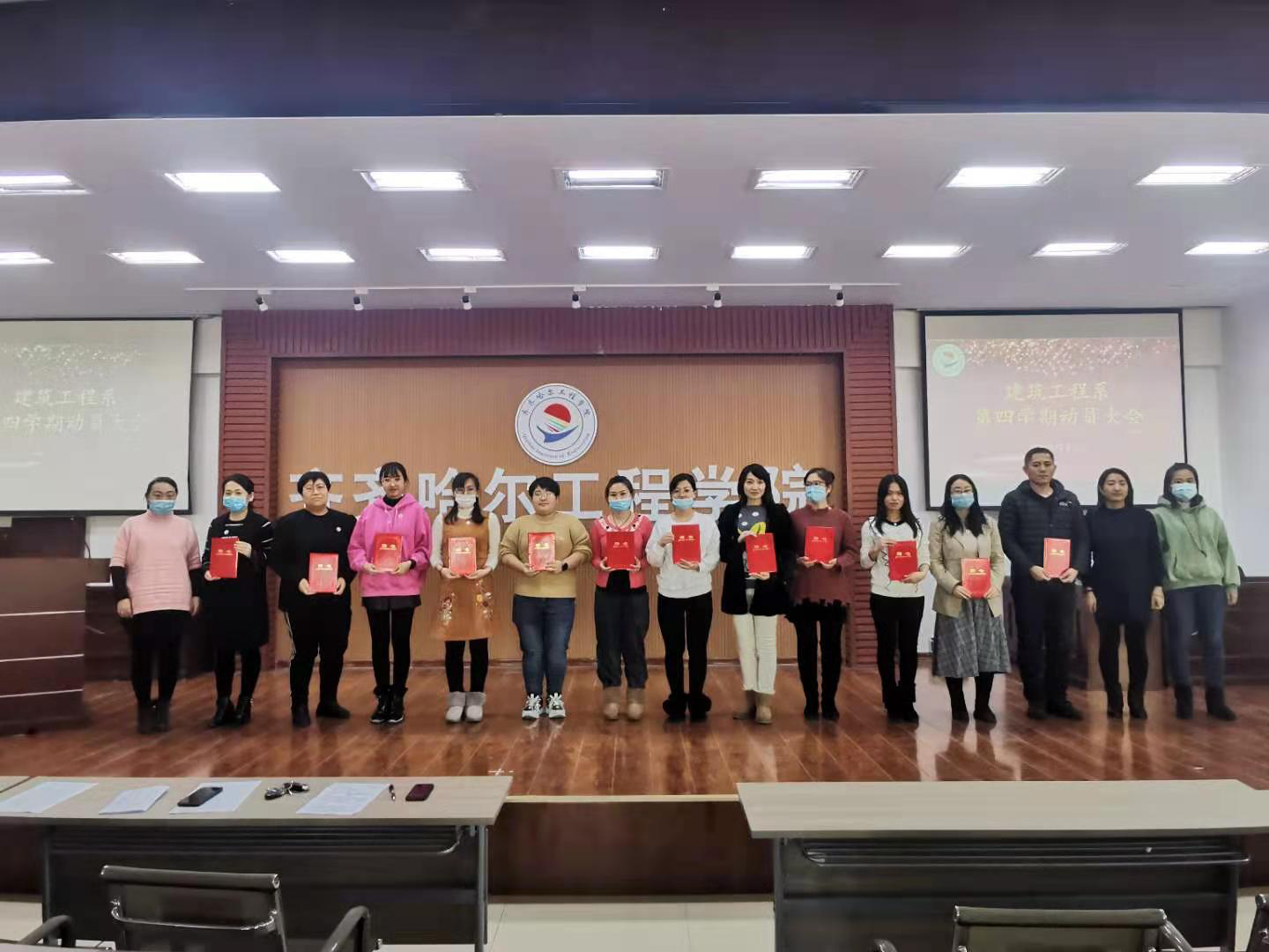 会议进行第一项,首先由建筑工程系教学工作副主任徐明宣读《2020-2021学年度第四学期实施方案》,为同学们介绍了第四学期实践活动的主要内容,提出了对第四学期各组长的要求与期望。会议进行第二项内容,由第四学期新生代表工管202班贺益东同学发言。贺益东同学表示将积极投入到第四学期实践活动中,认真完成第四学期实践的各项任务,与学院共成长、与新时代共前行。会议进行第三项,由系领导为四学期指导教师颁发聘书。会议进行第四项,由齐齐哈尔工程学院建筑工程系主任陈景鑫讲话。陈景鑫主任指出,第四学期是团队合作的实践活动,要让组员皆参与到其中,各司其职,禁止出现浑水摸鱼现象。讲话中更明确了第四学期带给当代大学生重要的意义,鼓励同学们积极参与,融入社会、服务社会,实现自身价值。