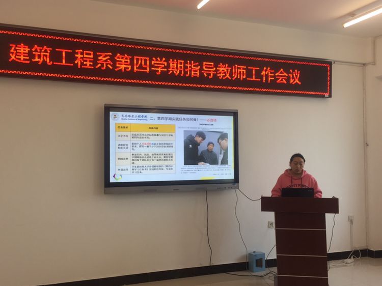 会议由建筑工程系学生工作副主任王丽萍主持,并对本系的第四学期实施方案进行详细的讲解,对各小组指导教师的相应工作进行明确与落实。会上各位指导教师就本系的指导方案中不明确的工作任务与环节进行研讨,同时,对学生的假期安全与进行第四学期活动过程中的安全问题提出强调。