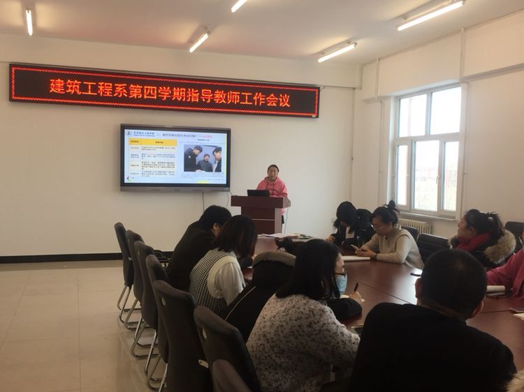 建筑工程系为积极响应《齐齐哈尔工程学院2020—2021学年度第四学期实施方案》的相关号召,落实本系对第四学期实施方案的相关要求,于2021年1月6日在第二教学区2409会议室召开“建筑工程系第四学期指导教师工作会议”,出席此次会议的人员有建筑工程系学生工作副主任王丽萍,以及担任第四学期相应指导工作的各专业指导教师。