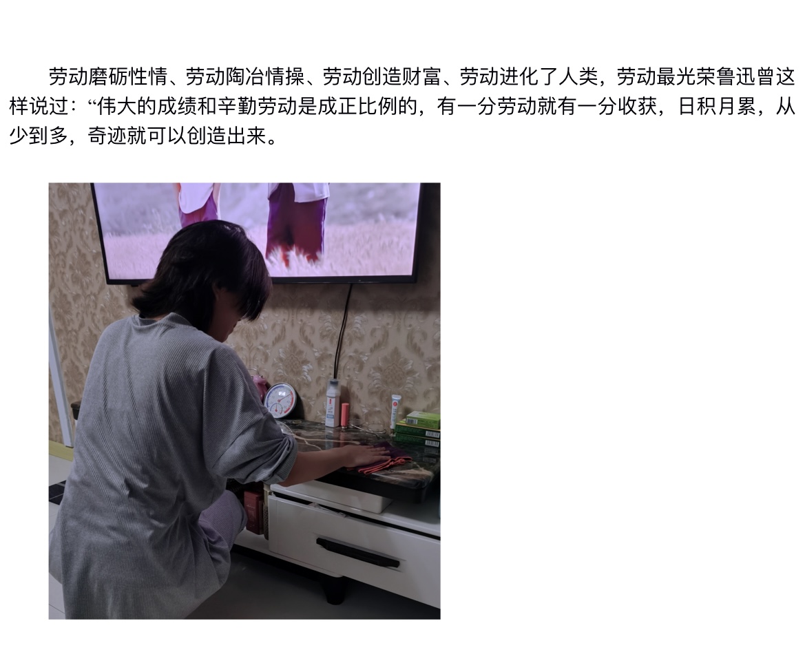 “劳动体验”培养了学生的身体素质能力,使学生们得到了强健的体魄。为发扬劳动精神,我系团总支特此将第四学期中优秀劳动成果制成展板,以便学生们欣赏。希望学生们通过欣赏展板,明白劳动不仅可以锻炼自己的身体,还促进了与家人之间的感情。