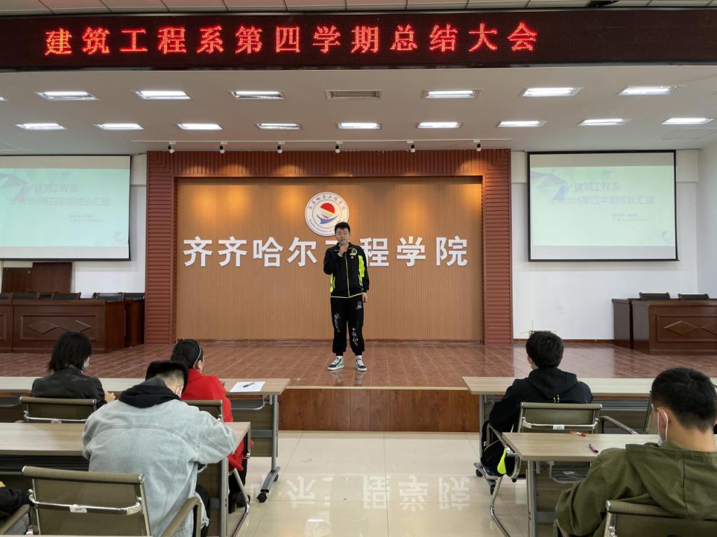 会议最后,由学工副主任王丽萍进行第四学期总结发言,对第四学期的开题准备工作以及活动过程中的师生配合工作提出高度肯定,她表示,第四学期是我校教育教学的特色课程之一,从公益活动的使命担当,到创业实践的职业风采,再到科技创新的标新立异,都强化着学生的“五种做事能力”,增强了学生社会责任感及人文修养,在过去疫情防控的大环境下更是彰显了我系学子们的爱国主义精神和素质教育的风范。希望在未来的学习工作中,我系学子继续发扬第四学期特色课程开展中所传承的努力、奉献、拼搏的精神,将特色教育和学生成长相结合,注重参与的广泛性,在学校的倡导下加倍努力,不断创新,共筑友爱、进步团结的建筑工程系,至此,建筑系第四学期总结表彰大会圆满结束。