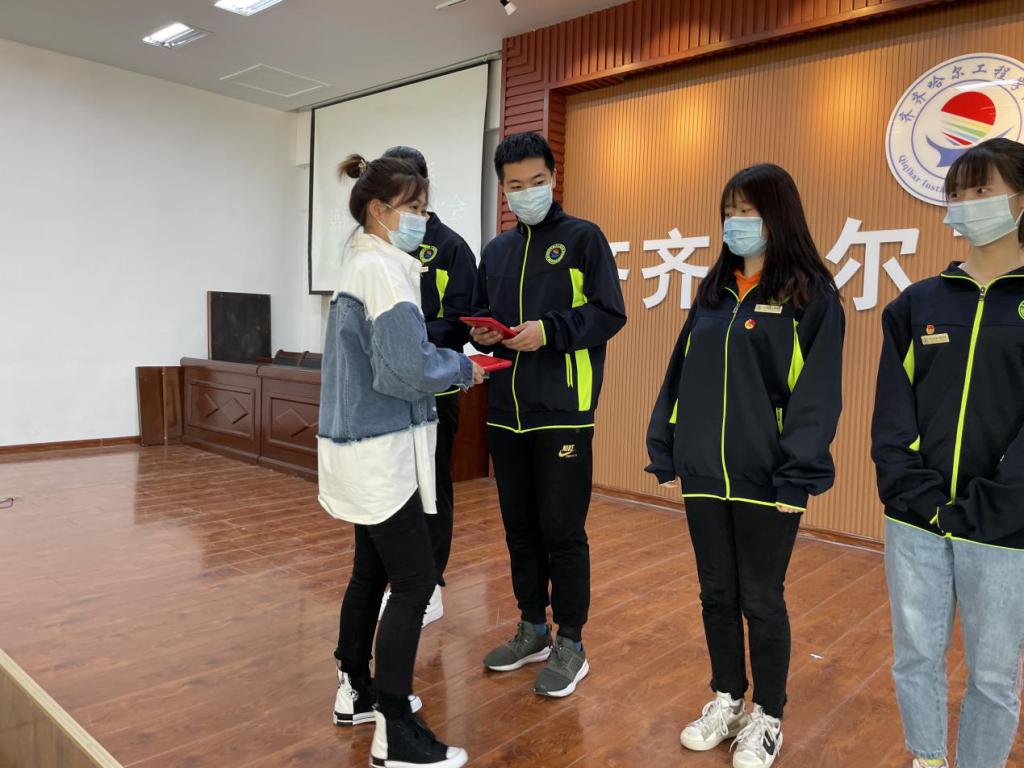 大会伊始,主持人公布疫情防控优秀志愿者名单,全体辅导员老师为获奖同学颁奖。青春志愿行,共筑青春梦,勇于奉献的优秀同学们在台上闪耀着属于他们的荣耀之光,充满赞扬和尊敬的掌声在会场回荡。会上,疫情防控优秀志愿者代表赵梓涵同学上台进行精彩发言,她表示通过服务他人、奉献社会,更加践行了我校“为融入社会走进来,为服务社会走出去”的宗旨。接下来,由第四学期公益实践优秀学生代表李悦、创业实践优秀学生代表邹明爽、科技创新实践优秀学生代表朱佳乐分别对第四学期开展的内容进行汇报,而后,由建筑工程系17级党员为第四学期公益实践优秀学生、创业实践优秀学生及科创实践优秀学生进行颁奖,并发放奖品。