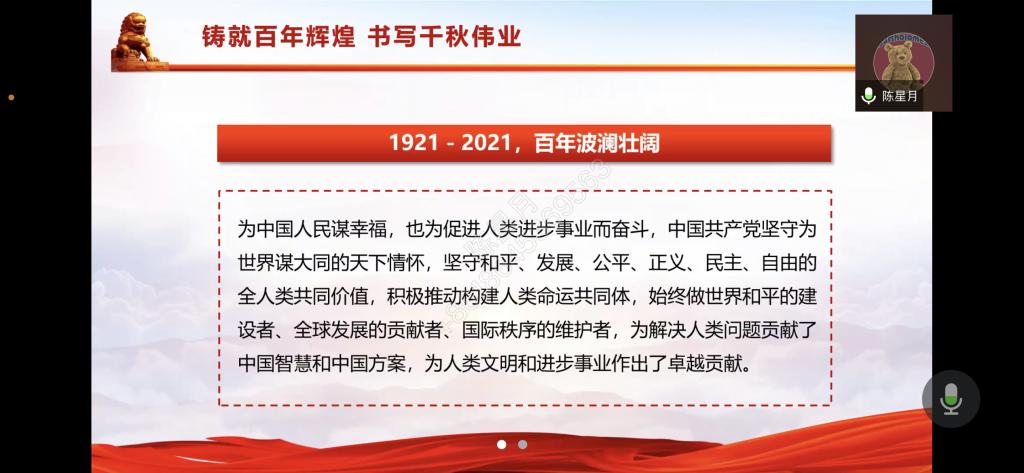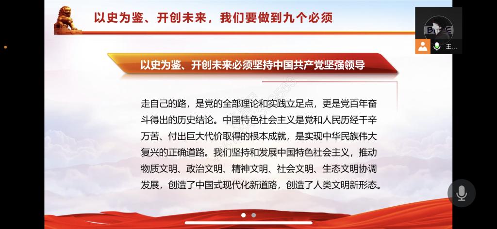 在本次专项实践活动中,系团总支强调了以史为鉴,开创未来的道路必须坚持中国共产党领导的重要性,并紧紧围绕以爱国主义为核心的民族精神和以改革创新为核心的时代精神。希望同学们能够通过此次“理论宣讲”真正的了解当下国情,并做好进一步的宣传工作。