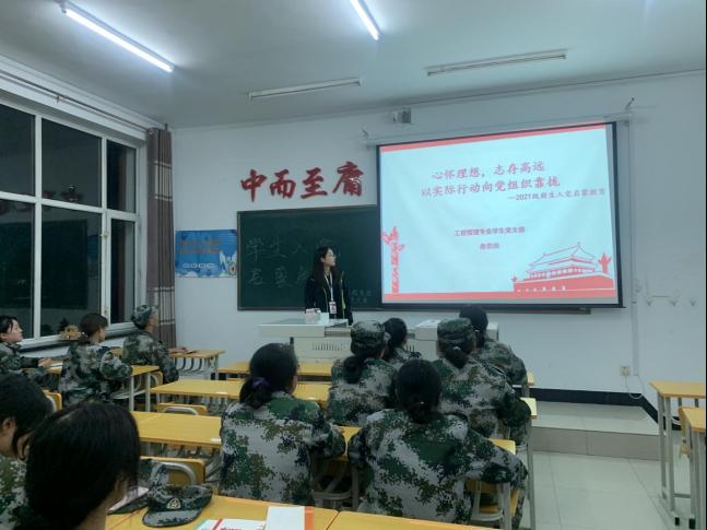 会议伊始,党员学长工管182班詹思雨围绕“为什么要入党”“怎么才能入党”和“入党应该注意些什么”方面为全体同学做了深刻讲解;党员学长工管181班张梦瑶从自身经历入手,详细介绍了建筑工程系党总支的构成情况并且讲解了“如何撰写入党申请书”;随后,党员学长工管181班邹明爽阐述自己对党的认识和理解,带领同学们回顾党的历史与发展;最后,党员学长工管182班吴世龙与同学们分享自己的入党经历,并强调作为当代的大学生,应努力学习,不断追求进步,积极向党组织靠拢。