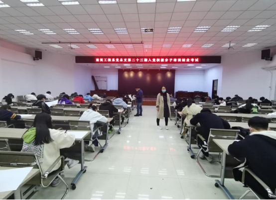 此次考试建立了多级监考制度,分别由教师党员监考、学生党员协助监考、党支部书记巡考、总支书记主巡考。建筑工程系党总支第二十三期入党积极分子开始考试前,老师对入党积极分子强调了考试的严肃性和重要性,并明确了具体要求与注意事项,考试过程中,学生们严格遵守考试纪律。此次考试是为了检验本期入党积极分子培训成果,并从中选出优秀入党积极分子进一步加强培养。