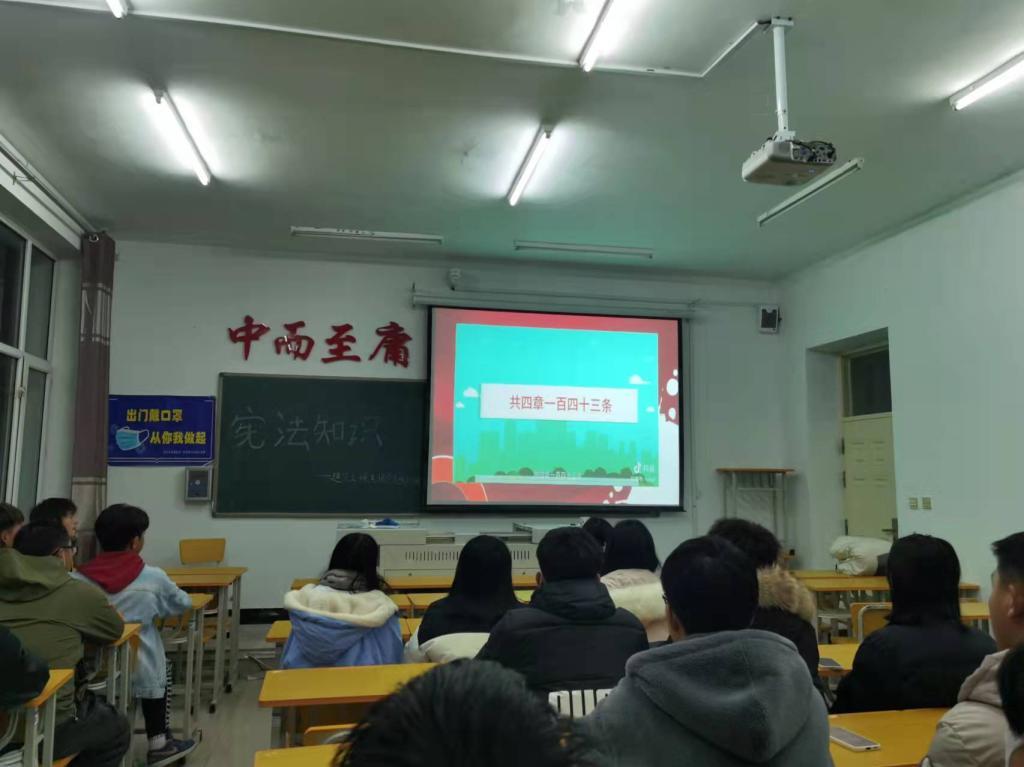 此次活动开展以“学宪法,守宪法,用宪法”为主题团日活动、“学宪法,讲宪法”知识竞赛两种形式。各团支部结合本班实际情况开展活动,同学们积极参与。知识竞赛现场问答环节中,通过抢答的方式进行比赛,先答对的加分,若同时抢答,两组同时加分。以“学宪法,守宪法,用宪法”为主题团日活动中同学们发表对宪法理解等方式积极参与到宪法宣传中,进一步营造了学校良好的法治教育氛围,增强了学生的法治观念,提高了学生知法守法的意识。