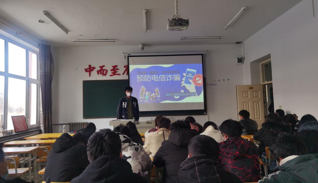 为深入学习贯彻习近平总书记对打击治理电信网络诈骗犯罪工作重要指示精神,扎实推进反诈教育进学校,普及反诈知识,提升同学们的反诈意识和反诈能力,建筑工程系团总支于2021年12月14日中午在一教1107教室举办“反诈防骗”知识竞赛。