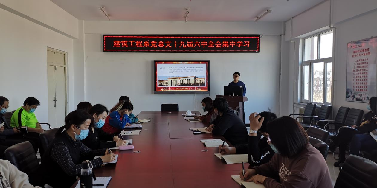 为了进一步加强对党的十九届六中全会精神的学习贯彻,建筑工程系党总支于3月29日组织进行党的十九届六中全会集中学习。本次学习由建筑工程系党总支书记刘贤鹏主讲,建筑工程系全体教职工参加。