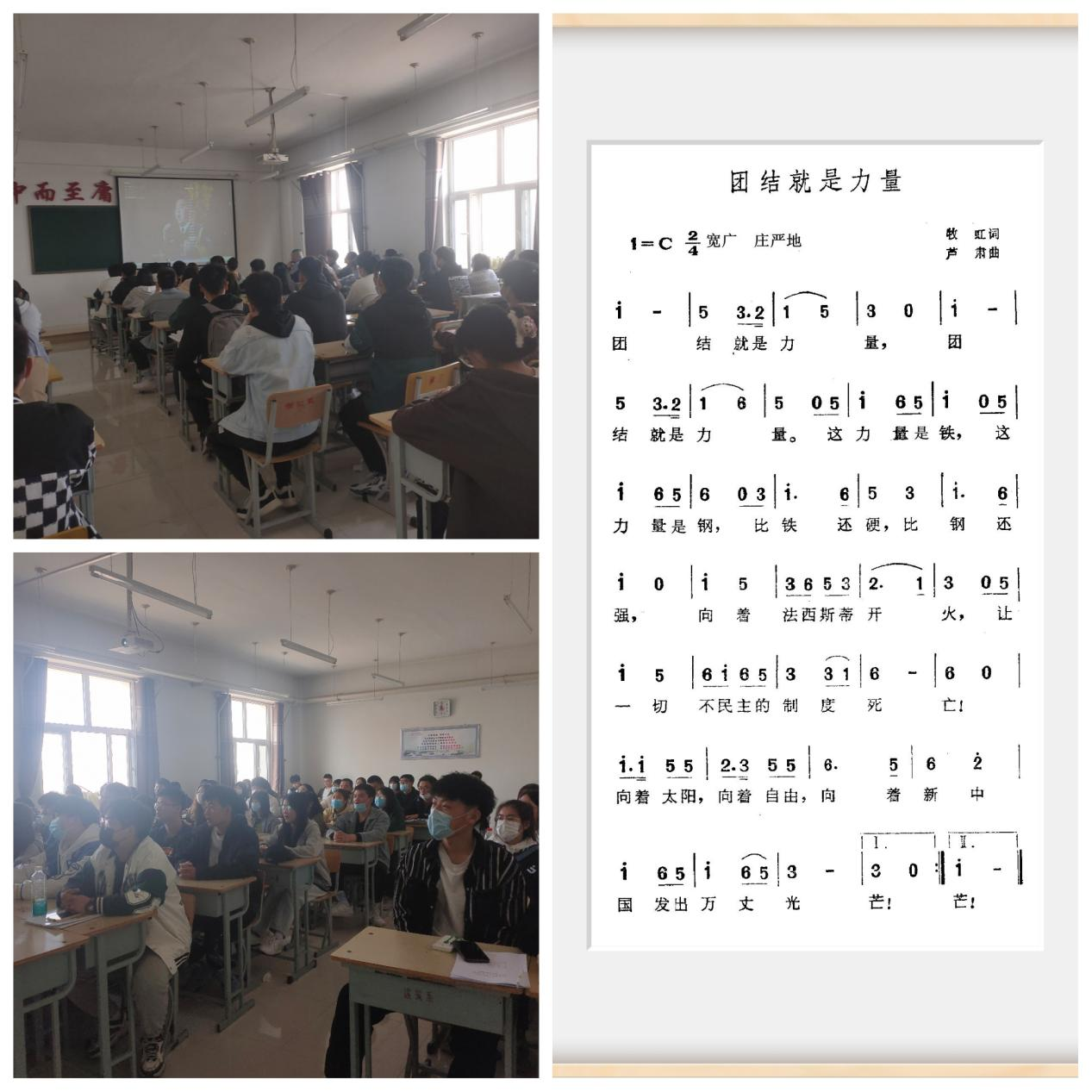 在学唱红歌中,党员学长杨倩和赵园园组织入党积极分子学唱红歌《团结就是力量》。通过激昂的歌声,使入党积极分子从歌曲中感受到团结的力量,感受到共产党的坚强不屈、齐心奋战的精神。