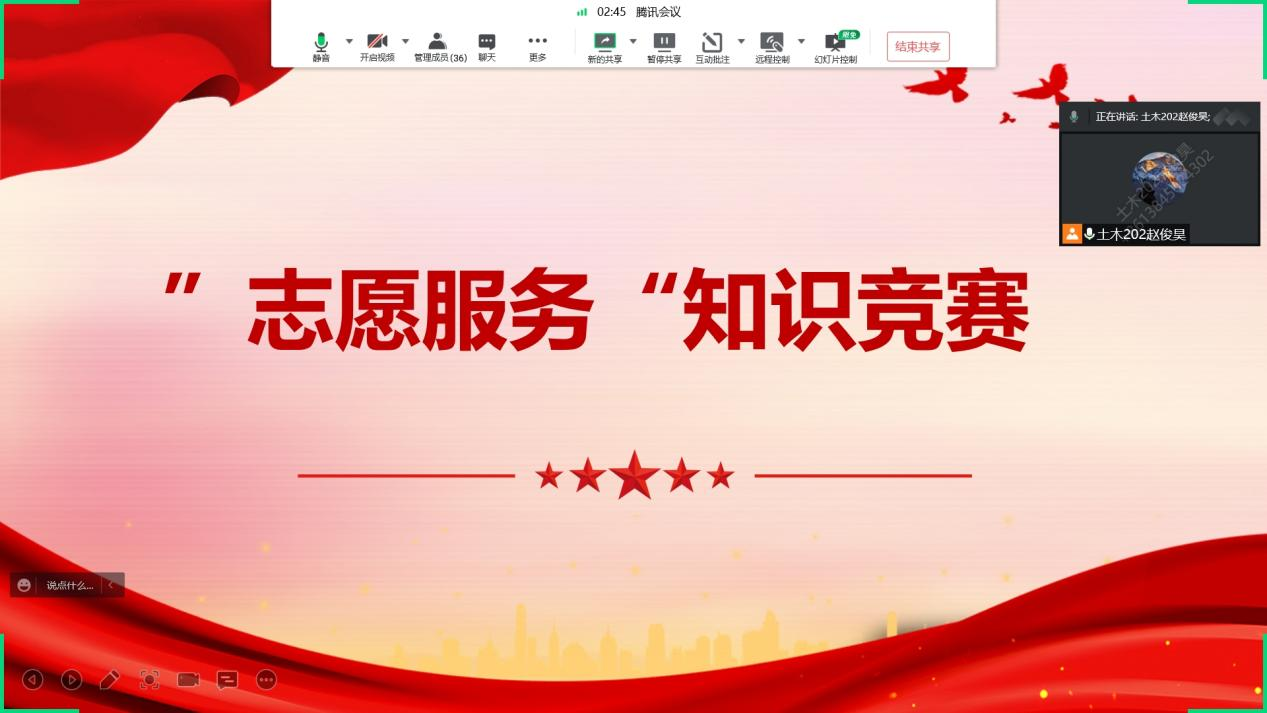 为了加强同学们对志愿服务的认识,让同学们都对志愿服务有所了解,建筑工程系青工部于5月21日晚开展了“志愿服务”知识竞赛的线上答题活动。