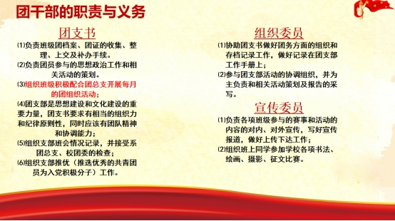 培训过程中,宋雪微首先讲解了“如何正确开展团支部工作”,叮嘱各团干部要不断提高综合素质,改进团干部的工作方法,增强团干部集体的凝聚力,才能扎扎实实地推进我校学生管理工作。随后又通过互动提问的形式引出了“团干部的职责与义务”这一主题,宋老师指出各位团干部要提高认识,从政治高度切实增强知识理论学习的主动性和自觉性,坚持脚踏实地,坚持学以致用,不断提高工作能力;要明确责任,提升素质,争做新时代优秀的团干部。会议最后宋雪微对22级团干部表达了殷切期望,希望他们在接下来的四年大学生活中,能够发挥自身长处,掌握更多技能,获得一段充实,富有激情的大学时光。