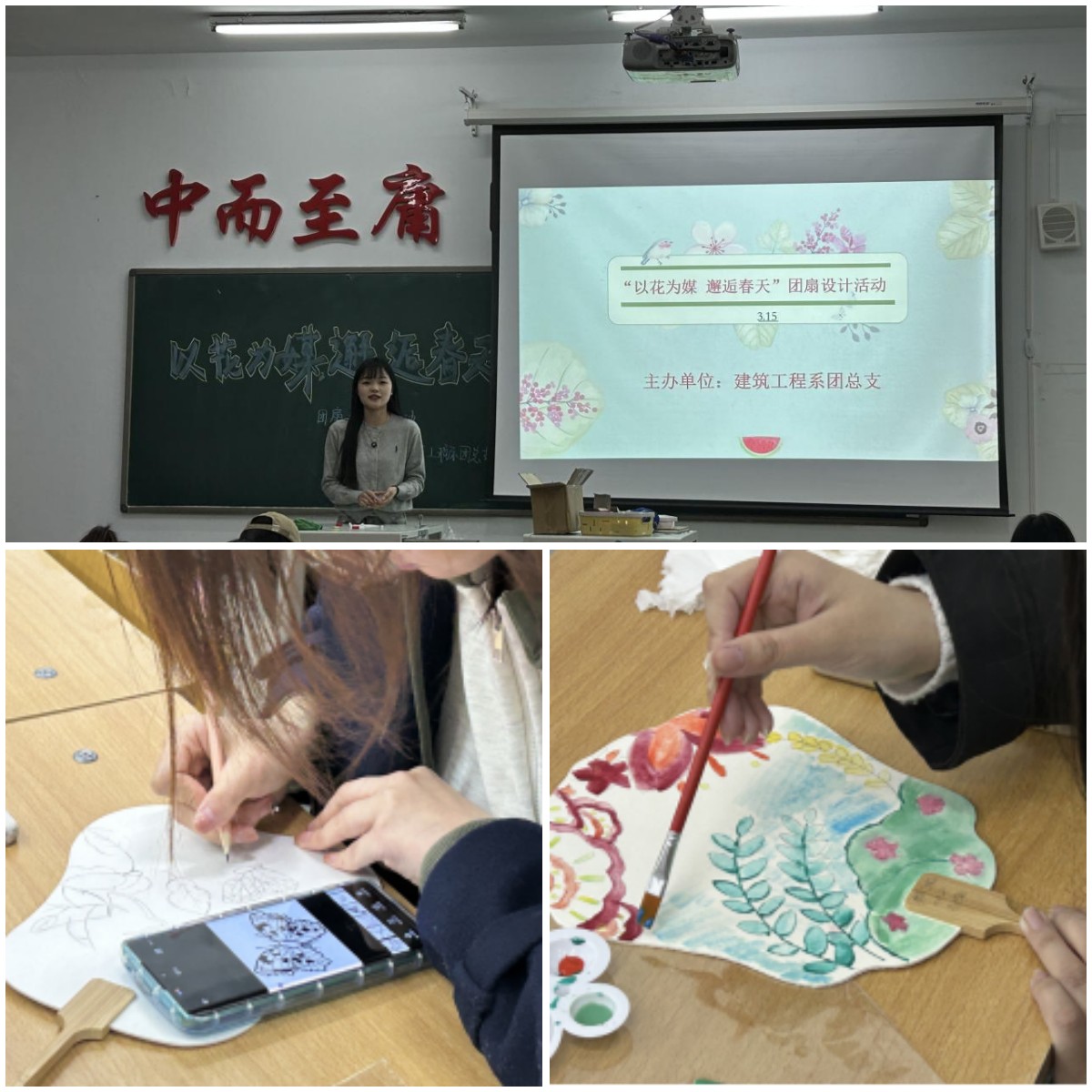 为进一步弘扬中华民族优秀文化,丰富青年女大学生的精神文化生活,感受民族文化魅力,落实美育教育,增强同学们之间的互动与交流。2023年3月15日,建筑工程系团总支在1#1113组织开展“以花为媒,邂逅春天”主题团扇绘画活动,活动由建筑系团总支组织部部长罗科莹主持,全校不同专业学生积极参加此次活动。