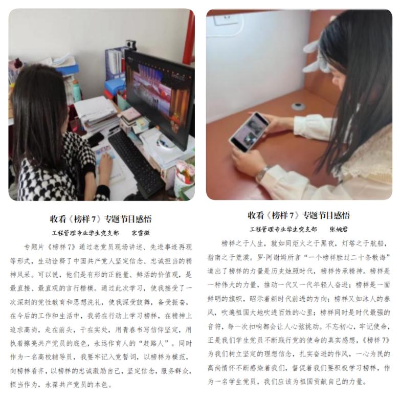 为深入学习贯彻习近平新时代中国特色社会主义思想和党的二十大精神,中央组织部和中央广播电视总台联合制作了《榜样7》专题节目。工程管理专业学生党支部组织全体党员收看,并撰写观看感悟。