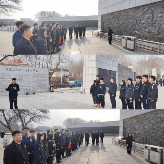 随后,全体人员开始有序参观和平广场,缅怀革命烈士的丰功伟绩。讲解员土木191班程嘉、工管222班侯宇分别向同学们介绍了《虏役》《流亡》《江桥抗战》《手印墙》等作品的历史背景以及所表达的爱国情感。