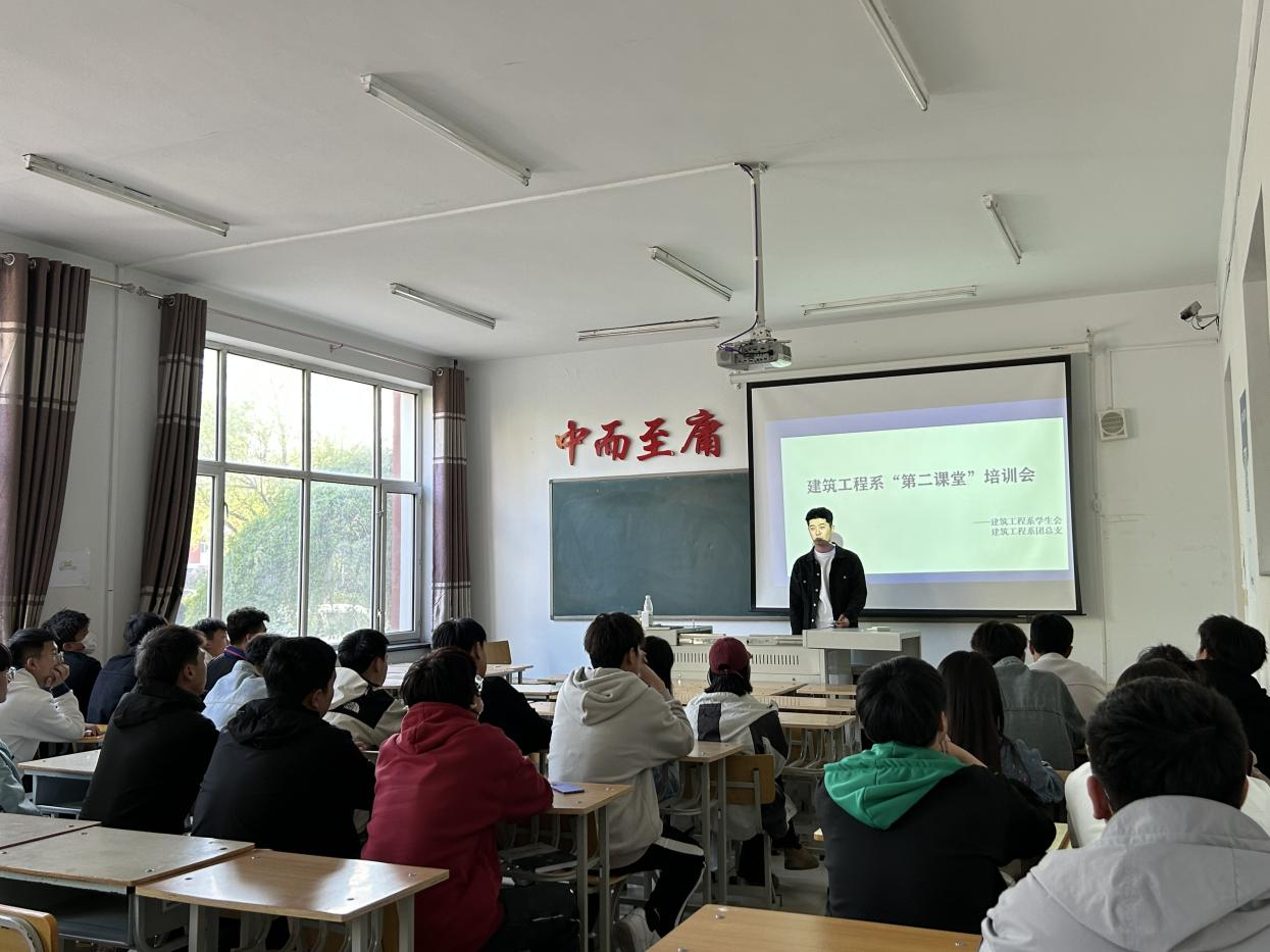 为促进第二课堂规范化使用,推动我系精神文明建设,帮助同学们更好更快地了解第二课相关要求。5月16日建筑工程系在一号教学区1113教室开展第二课堂培训会,培训会由建筑工程系学生会主席宋超、建筑工程系团总支副书记王子杨共同主持,建筑工程系团学组织学生干部以及建筑工程系21、22级全体班长、团支书出席此次培训会。
