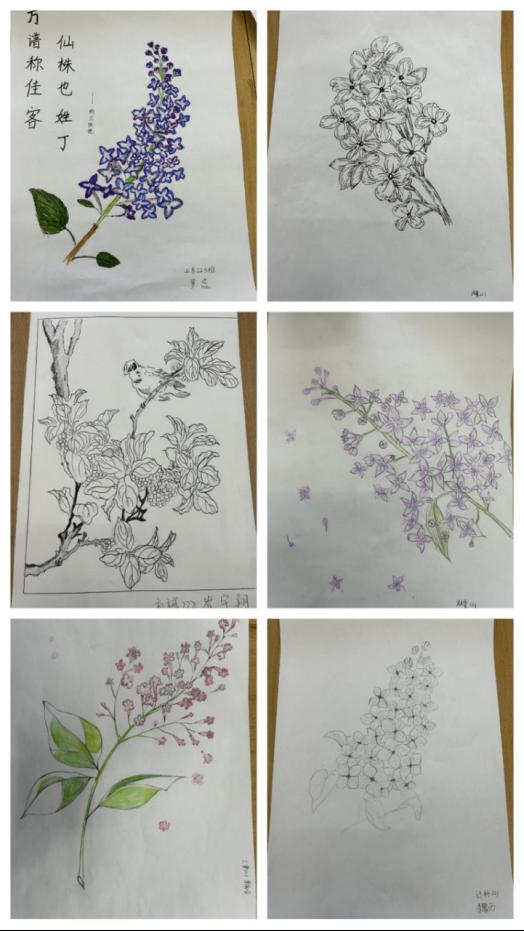 风景221班夏雨薇同学表示:“在明媚的早晨,站在丁香树下,闻着花香,画着丁香花,能够给人一种舒适、惬意的感觉,在此次活动中了解到了丁香花具有顽强、不屈的精神以及恬静、淡泊名利的美好品质。作为新时代的大学生,更应当学习丁香事迹,传承丁香文化,弘扬丁香精神。”