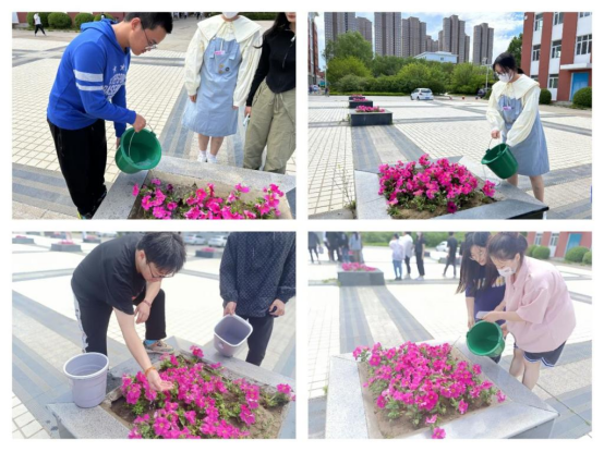 活动开始前,青工部部长赵梦雨在一号教学区1113教室为参加活动的同学简单概述了本次志愿活动的目的与宗旨,并为同学们分发劳动工具。而后,青工部部长赵梦雨带领同学们到易湖畔开展志愿活动。本次志愿活动五人成组,自行组队,各组用分发的容器为校园花坛浇水,为建设“丁香校园”贡献力量。活动中,同学们接水、运输、浇水,大家相互协作,干劲十足,充分展现志愿者精神,共创美丽校园环境。活动最后,由青工部部长赵梦雨根据现场志愿服务时长给同学们录入相应志愿服务小时数。