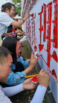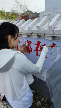 通过本次暑期“三下乡”乡村振兴社会实践活动,使我受益良多,也产生了一些新的思考。第一个词是“落地”,在实践中使学生的专业技能本领“落地”。从前期的墙体设计、调研,到中期的实际绘画,使学生们了解了基本民情、社情,走出学校理论的象牙塔,在实践中增长才干,真正使专业技能落地服务社会助力乡村振兴。第二个词是“提升”,活动中青年团员们积极发挥“团队实践”能力,提升报效祖国的使命感、责任感和积极性。在“三下乡”相关文件的指引下,使青年团员们更深入贯彻学习了我党“二十大精神”的实质内涵,走进乡土中国深处,厚植爱农情怀,贴合专业练就本领,服务社会地方经济发展,不断激发青年团员们奋发成才,坚定走中国特色社会主义道路的理想信念。在后续的工作中,我将以此为积累,不断引领广大团员们进行思想引领建设和技能实践活动,服务社会、服务人民。