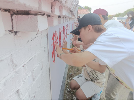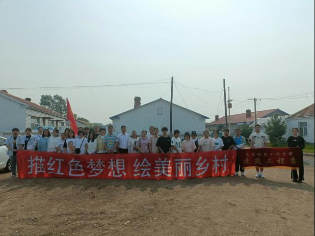 为深入贯彻落实习近平总书记给中国农业大学科技小院学生的重要回信精神以及习近平总书记关于“三农”工作的重要论述,引领学生将课堂学习与乡村实践紧密结合,发扬实事求是精神,掌握密切联系群众方法,脚踏实地,为加快推进农业农村现代化、全面建设社会主义现代化国家贡献青春力量,7月11日,由齐齐哈尔工程学院建筑工程系党总支副书记刘贤鹏、团总支书记宋雪微、学生党支部书记蔡爽、风景园林专业长赵玖香、宋兴蕾以及生涯导师和辅导员老师共31人组织成的志愿服务队,走进齐齐哈尔市龙沙区大民街道三合村,开展“描红色梦想、绘美丽乡村”文化景观墙的绘制以及彩绘墙布的安装等工作。