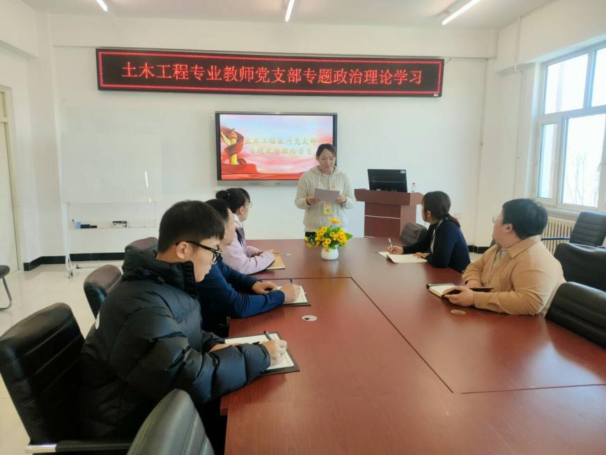 会议上,首先土木工程专业教师党支部书记袁继杰带领大家深入学习贯彻习近平总书记宪法重要论述精神,全面加强宪法实施和监督。学习后大家围绕“习近平法治思想在全面依法治国工作中的指导地位”展开讨论,纷纷表示要更加坚定理想信念,认真贯彻落实习近平法治思想,不断提高运用法治思维和法治方式推动工作的能力,做宪法的拥护者、践行者。