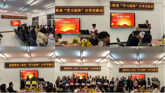 本次交流会上,建筑管理工程系党总支为“学习强国”优秀学员和“学习强国”先进党支部颁发了奖品和奖牌,管理专业学生党支部党员于汶麟、土木工程专业学生第二党支部党员侯朝阳分享了自己的学习方法和学习心得,并表示在今后的学生和生活中,将充分利用“学习强国”平台,不断汲取知识的养分,并积极带动身边的同学一起加入“学习强国”的学习中。