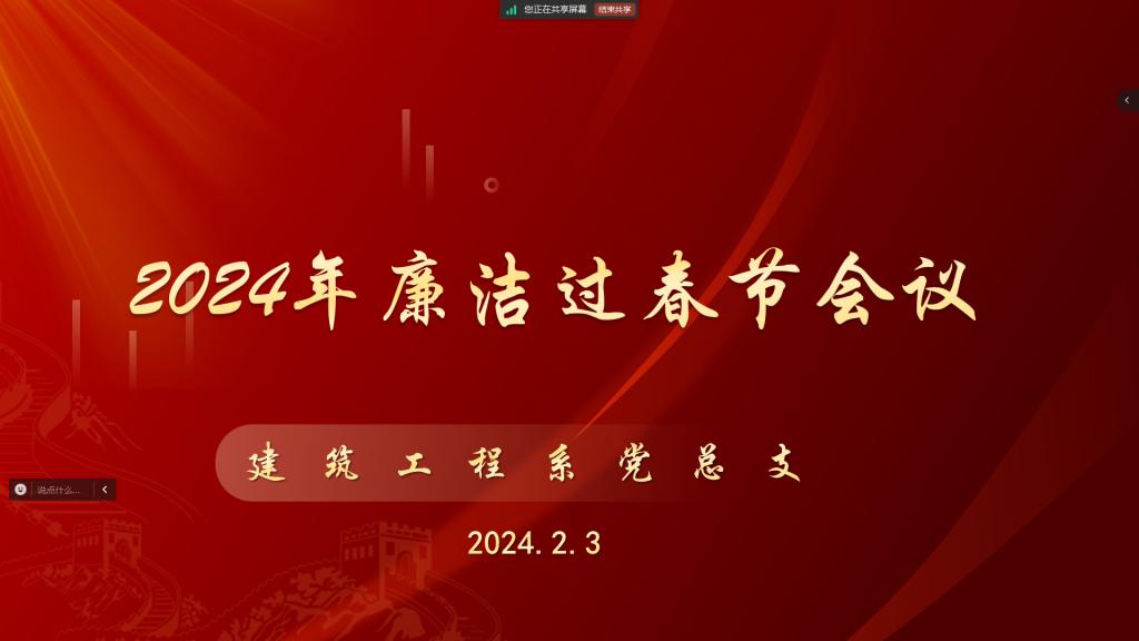 为进一步强化党风廉政建设,提高建筑工程系全体教工廉洁自律意识,2月3日,建筑工程系党总支通过腾讯会议组织线上“2024年廉洁过春节会议”。