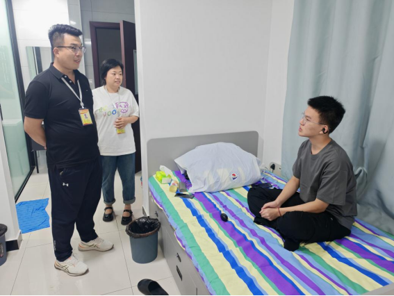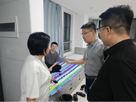 土木与管理学院副院长于骁晗和生涯导师走访学生公寓期间着重关注学生的学习状态,对刚刚报到就投入到学习中的学生进行勉励,并询问了学生的兴趣与爱好。