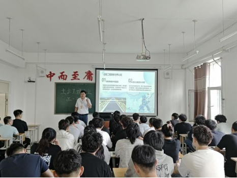 徐喜辉结合自身参建的各大项目介绍,到带着校外课堂学生深入校园的项目建设,诠释了土木工程人传承的工匠精神,土木学子们的亮剑精神。结合当下事实为学生们梳理土木行业的发展前景、学生的学业规划以及未来就业趋势。