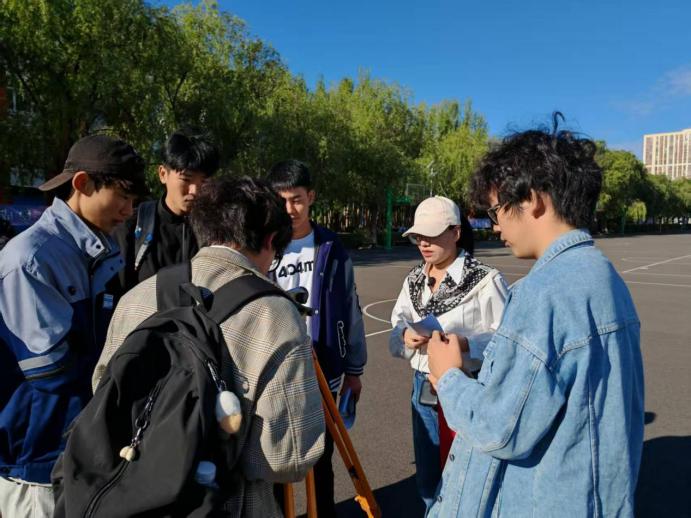 结合专升本新生测量基础存在差异的特点,为帮助有基础的学生巩固技能、无基础的学生入门实践,张晶晶在校园测量实训场地开展仪器操作演示,详细讲解水准仪、全站仪的架设、调平、瞄准、数据读取与记录等步骤。新生分组实操时,老师与测量小组学长全程巡回指导,针对不同基础学生的操作问题精准纠错。通过亲身体验,新生不仅扎实掌握了测量仪器基本操作技能,更深刻体会到测量工作“失之毫厘,谬以千里”的严谨性与工程实践中的挑战性。