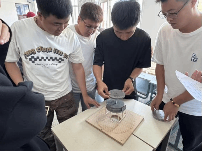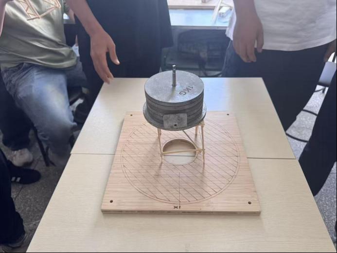 创作阶段,学生以3人为一组,利用竹签、胶水等材料,制作要求的承重框架。过程中,各小组充分发挥想象力与协作能力,教师与小组成员则巡回指导,针对模型受力分析、节点连接方式等问题提供专业建议,助力学生完成框架搭建。模型测试环节是大会的高潮。现场通过逐步增加砝码的方式,检验各框架的承重能力与抗变形性能,多组作品的承重表现远超预期。测试结束后,师生共同复盘模型设计的优点与不足。