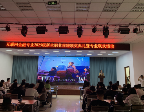 9月19日,为将文艺表演与职业前瞻的深度融合,为新生们搭建了展望职业未来、展现青春风采的舞台。互联网金融专业2025级新生职业前瞻颁奖典礼暨专业联欢活动在二号教学区2508会议室盛大开启。本次活动以“融聚青春 音舞飞扬”为主题,由辅导员刘天缘及各专业老师牵头组织,互金251班王诗雅担任主持人,互联网金融专业全体学生共同参加。