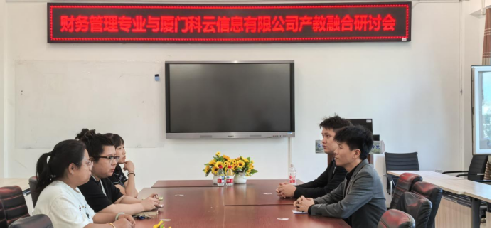 9月18日,财务管理专业与厦门科云信息科技有限公司在二号教学区2409会议室开展产教融合研讨会,土木与管理学院实验中心主任李盼盼带领财务管理专业赵靖宇、马金英两位教师与厦门科云信息科技有限公司经理魏建博,围绕构建起多维度、深层次的协同育人体系进行洽谈,推动教育资源与产业需求精准对接。