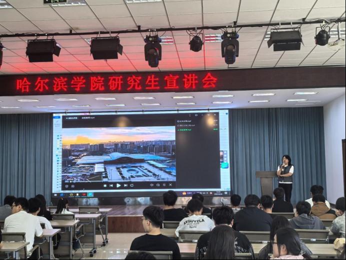 宣讲会上,哈尔滨学院智能与建筑工程学院副院长高春通过宣传片,全面介绍了学校的办学历史、学科优势、硕士点特色及师资力量,重点解读了与我院专业高度契合的土木类研究生培养方向。同时,结合当前就业形势与升学趋势,分析了攻读硕士学位对职业发展的积极影响。