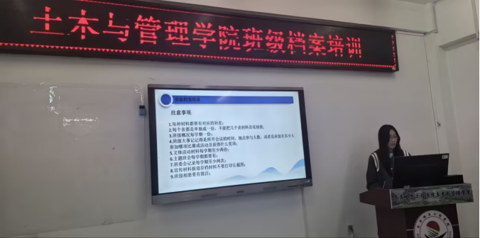为提高班级档案管理的规范化和系统化程度,10月10日,土木与管理学院兼职档案员刘丽娜组织班级档案培训。此次培训由优秀班级档案员财管232班的李苗苗担任主讲,42名班级档案员参加。