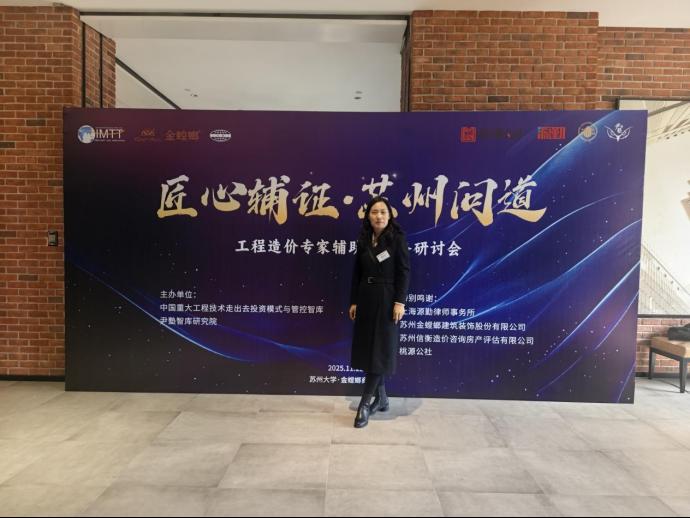 为精准服务人才培养方案修订,赋能专业建设内涵与课程教学改革,促进教学与实践的深度融合。11月21日至23日,土木与管理学院工程管理专业教师骆净华赴苏州参加由中国重大工程技术走出去投资模式与管控智库(尹塾智库)主办的“匠心辅证·苏州问道——工程造价专家辅助人业务研讨会”在苏州成功举办,来自全国的工程造价行业领军人物、专家辅助人先行者、知名律所律师、法院法官、高校学者及咨询企业高管等齐聚一堂,共探行业发展新路径。
