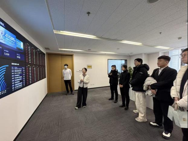 会谈前,在东方财富负责人的陪同下,走访团先后参观了企业2楼演播室及7楼行情中心,近距离观摩了实时交易数据监控系统、Choice金融终端实操演示等,学院一行深入了解了企业数字化运营模式与技术研发实力,对金融科技行业的发展趋势及人才能力要求有了更直观、深刻地认识。
