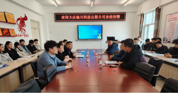 招聘会伊始,贺全德对大庆德川科技有限公司的到来表示热烈的欢迎,并介绍了学院的发展态势,以及学院毕业生的总体优势。张嘉玉系统介绍了公司的发展定位和核心业务板块。大庆德川科技有限公司是一家专注于智慧市政、非开挖修复技术及给排水智能检测领域的高新技术企业。