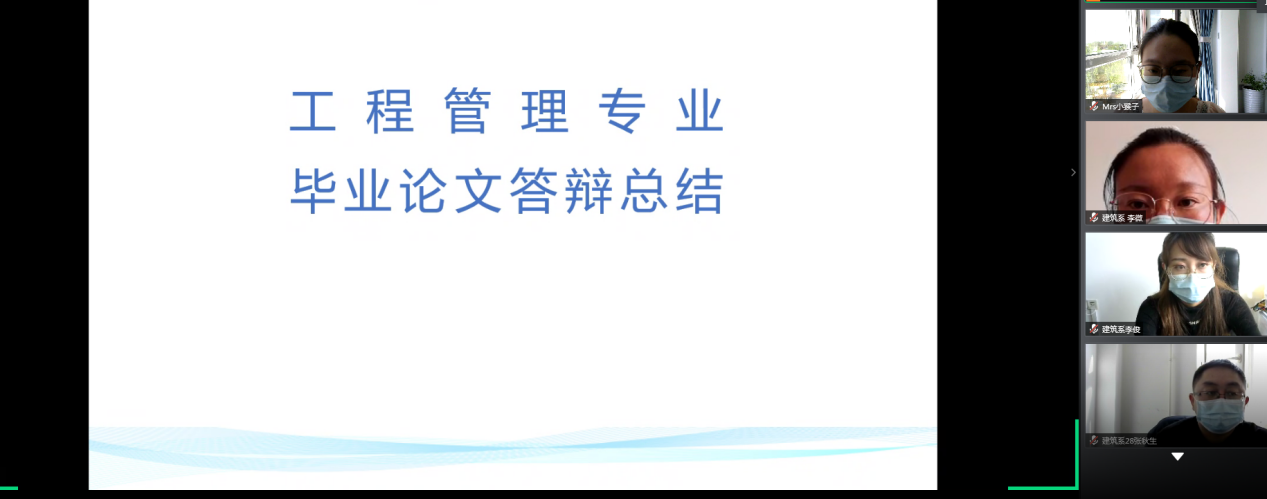 5月26日下午15:30,工程管理专业就2016级毕业论文答辩进行了总结会议,会议通过网络形式召开,由专业长张好徽老师主持,所有论文指导教师均参加了本次会议。
