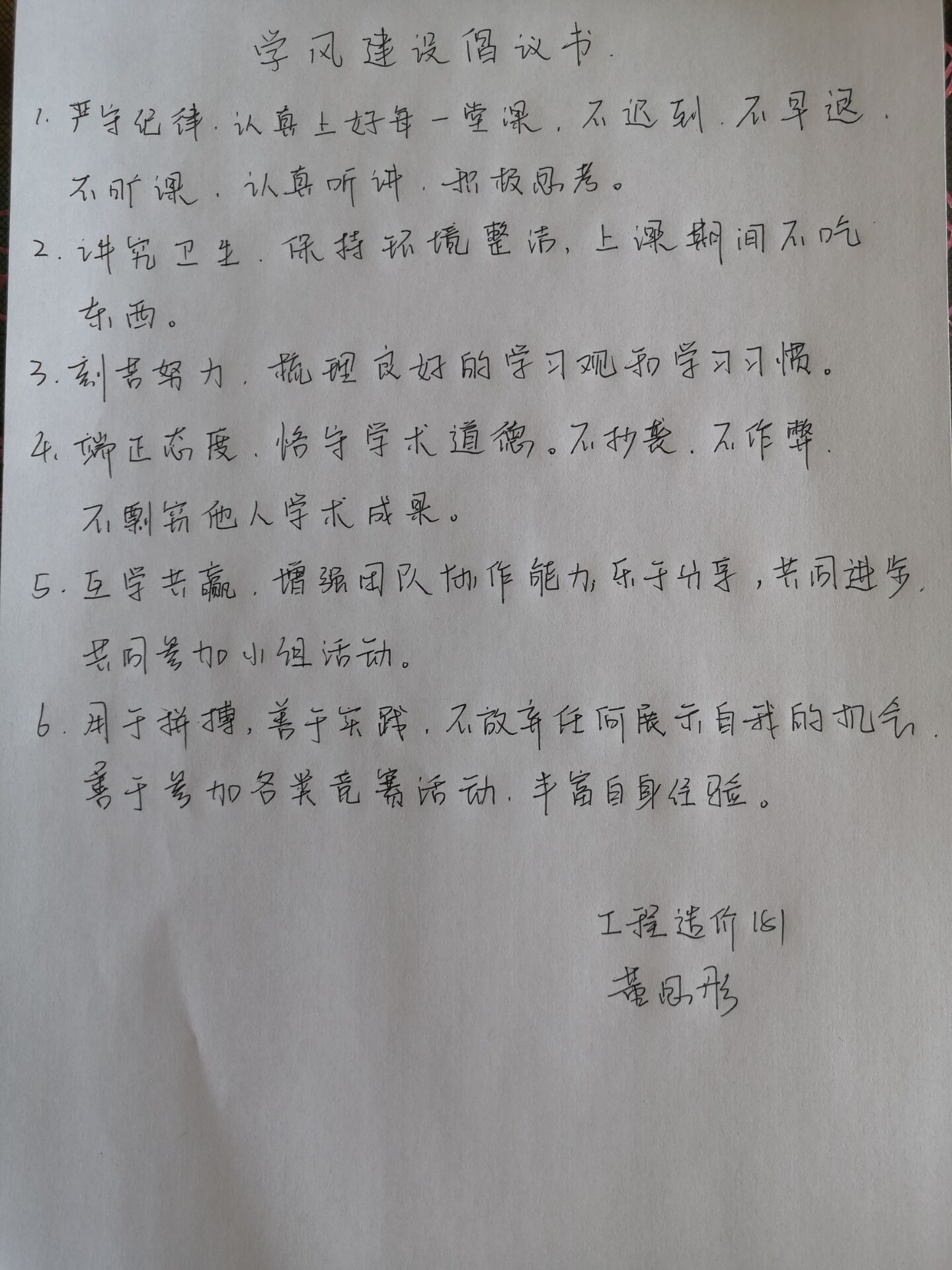 会议最后,曲老师表示,课堂作为大学学习的重要途径,是形成学风、体现学风的重要渠道。严格的课堂记录显得尤为重要,因此,老师向全体同学发起学风建设倡议书,要求同学们以此严格要求自己。