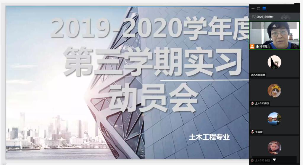 7月20日下午,土木工程专业通过腾讯会议线上分年级逐一开展实习动员及安全教育会。本次会由土木工程专业长李智慧老师主持,土木工程专业全体教师,土木工程专业17级、18级辅导员于敦续老师,19级辅导员姬园梅老师,土木工程专业19级、18级、17级全体学生参会。