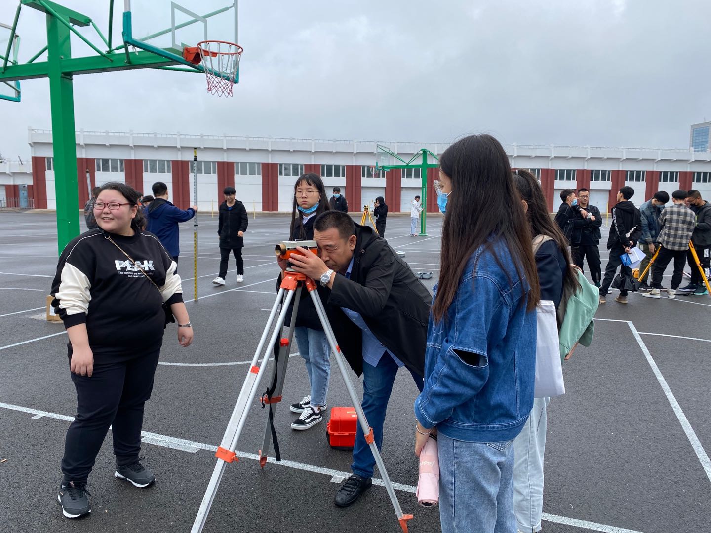 学生操作过程中,贺老师指出学生操作水准仪的错误动作,在给学生示范过程中诠释土木工程从业人员应具备一丝不苟的职业精神,学生感受到此项工作需要严谨认真的工作态度。