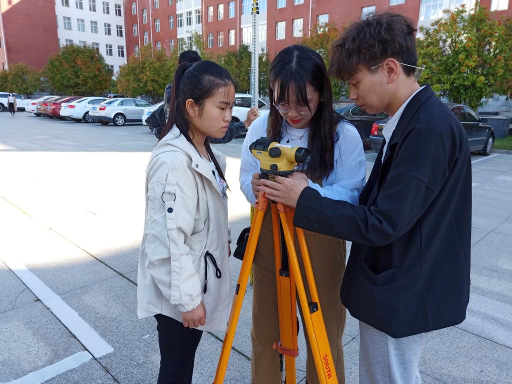 因疫情原因工程管理专业2019级《工程测量》实训课程在返校后进行,我们有线上课程理论知识学习、三学期内业计算任务的基础,对开展的测量实训课程十分期待。张晶晶老师为了锻炼我们的实际操作能力、动手协调能力和团队合作能力,课上采用分组教学,学长制,带领我们了解和掌握测量仪器的使用,读数、测量、计算高程等,学生们在张晶晶老师的带领下对该课程的兴趣很高,并且能够很好的完成教师下发的相应任务。