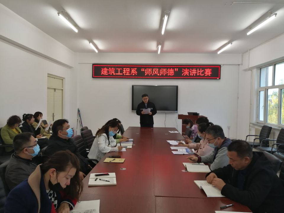为了进一步加强教师职业道德建设,营造良好的师德师风氛围,提升教师队伍整体素质,充分展示学校教师风采。10月13日下午,建筑工程系在二号教学区2409会议室举行“师风师德”演讲比赛,经过专业推荐有9名教师参加此次比赛,全体教师观摩聆听了本次比赛。
