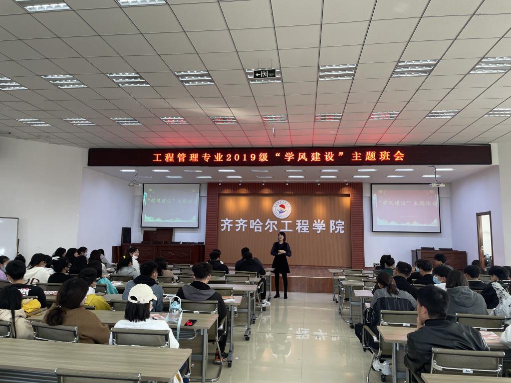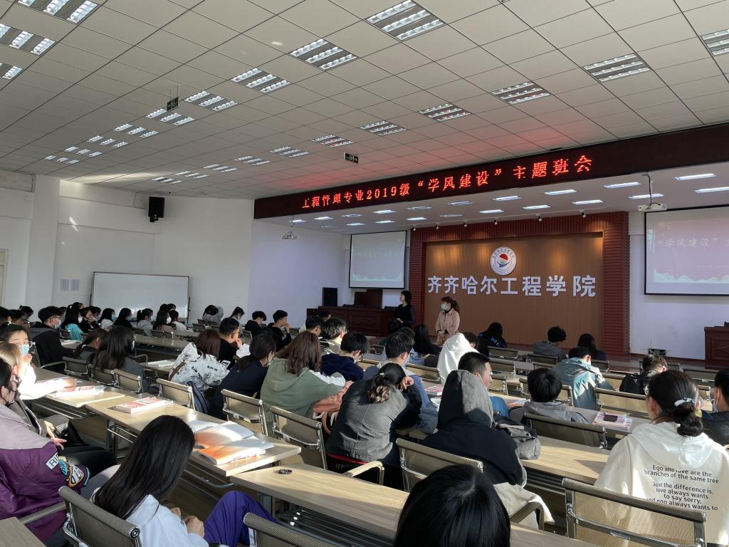 学风建设是高等学校永恒的主题,是全面贯彻党的教育方针,是高等学校实现培养目标的重要条件,是衡量办学水平的重要标志。蔡爽老师围绕着“班级学风、整体成绩水平、学习经验交流”等方面对2019级的工程管理专业学生进行学风建设主题班会,工程管理专业专业长曲梦露老师为同学们的学习规划作出指示。两位老师关于怎样去学习,怎样去确定学习目标这些问题,告诉学生要有自己的学习体系,尽管每个人的学习方法不同,但是勤奋是共同点。教育学生要刻苦努力,用勤奋书写不悔青春。