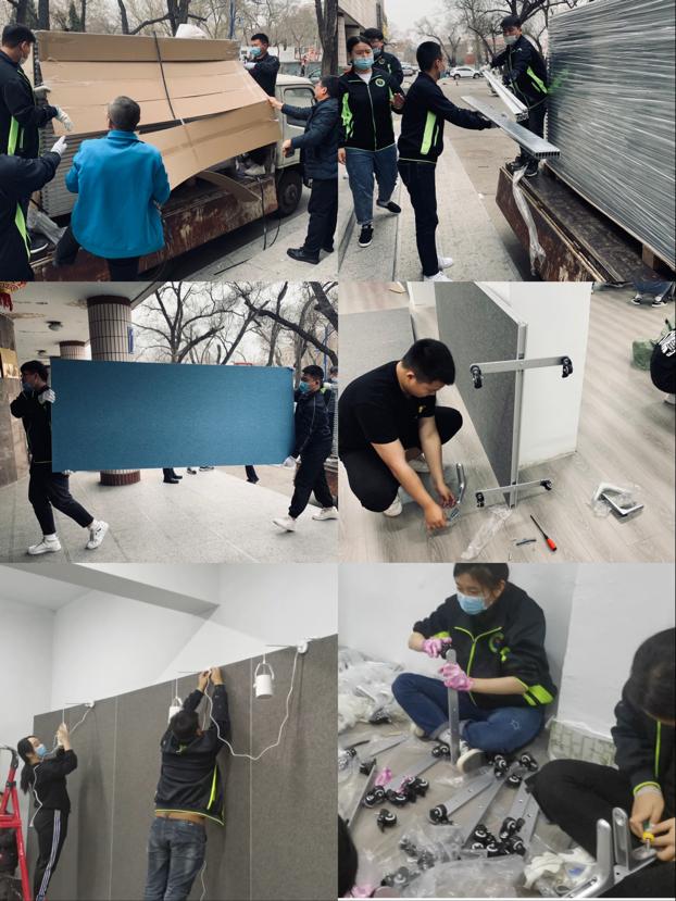 4月11日下午,风景园林专业创业团队在科技馆门口紧急集合,所有团队成员立即放下手里的事情,积极投入到工作中。本次工作主要是进行科技馆展板安装工作。进入科技馆后,团队成员各司其职,负责人赵琳琳进行本次工作的分组,风景17级学长范旭超、王润之、张强负责卸车和搬运工具。赵琳琳等人进行安装工具、展板滑轮零件组装的流水线工作与场地的清扫工作。唐文鑫等人负责主要展板的安装。为了尽快完成这次展板安装工作,女生进行流水式作业,提前将展板滑轮进行组装,再由男生安装至展板。我团队成员按部就班,工作有条不紊。团队成员都积极工作,发挥不怕苦,不怕累的精神。后续与科技馆工作人员进行展板摆放设计工作,确定展板摆放位置后进行展板的固定,为了使展板展示效果更加出色,同学们对展板进行了展示灯的安装,安装完成后进行通电实验,设施完善,展示效果好,后续进行展示画挂钩安装固定工作。工作非常迅速,团队人员配合十分默契,高效率的完成了本次工作。
