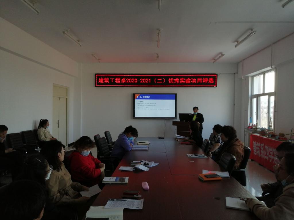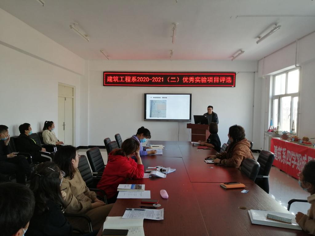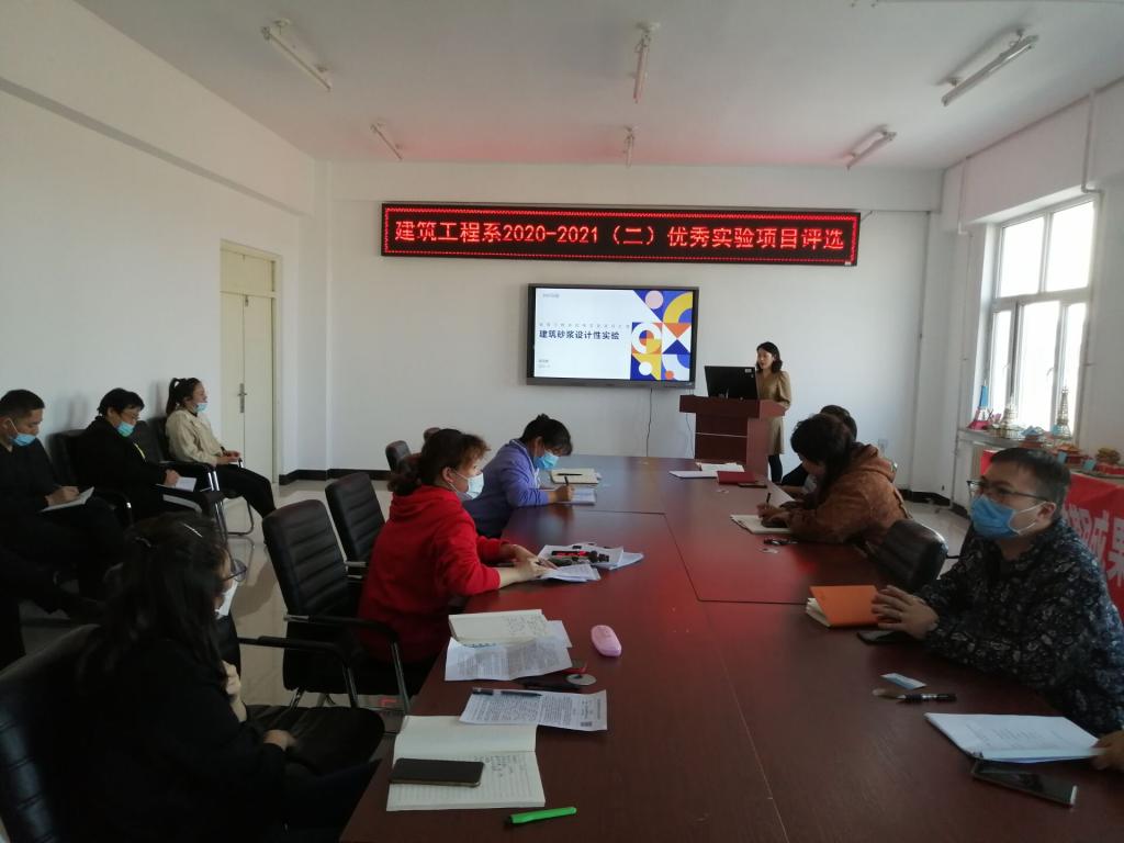 为促进实验教学改革,提升学生实践能力和教师业务水平,建筑工程系于4月13日下午在2#2409组织开展2020-2021学年度第二学期优秀实验项目评比活动,评比活动由教学工作副主任徐明主持,由建筑工程系二级督导、专业负责人担任评委,共有8名教师的8个实验项目参加评比。参赛的优秀实验项目涉及《基础工程》《土木工程材料》《工程力学》《测量学》等多门课程,每位教师都进行了精心准备,力求让实验课堂精炼高效,突出课堂有效性。