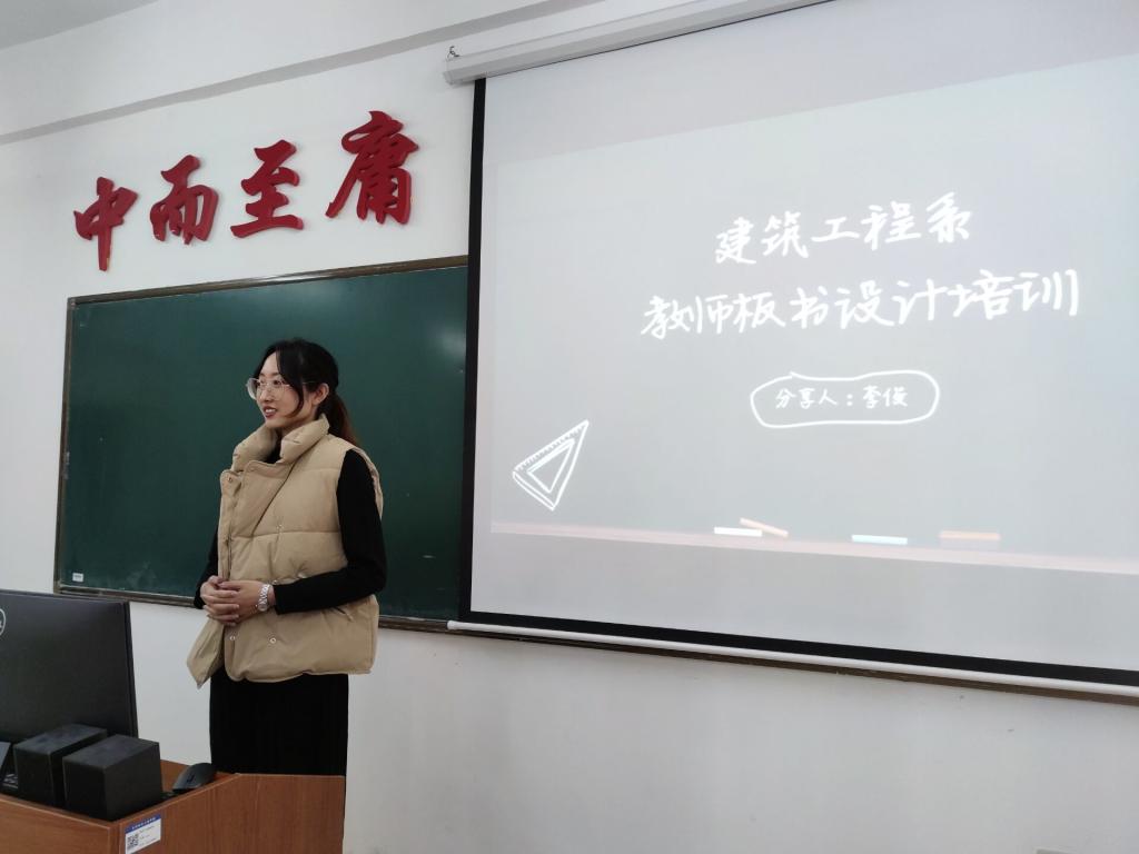 为提升我系教师的教学技能,夯实教学基本功,强化教师板书书写水平,搭建教师板书交流学习的平台,4月30日下午,李俊老师在2#1408教室开展建筑工程系教师板书设计培训,有教学任务的教师参与此次培训。